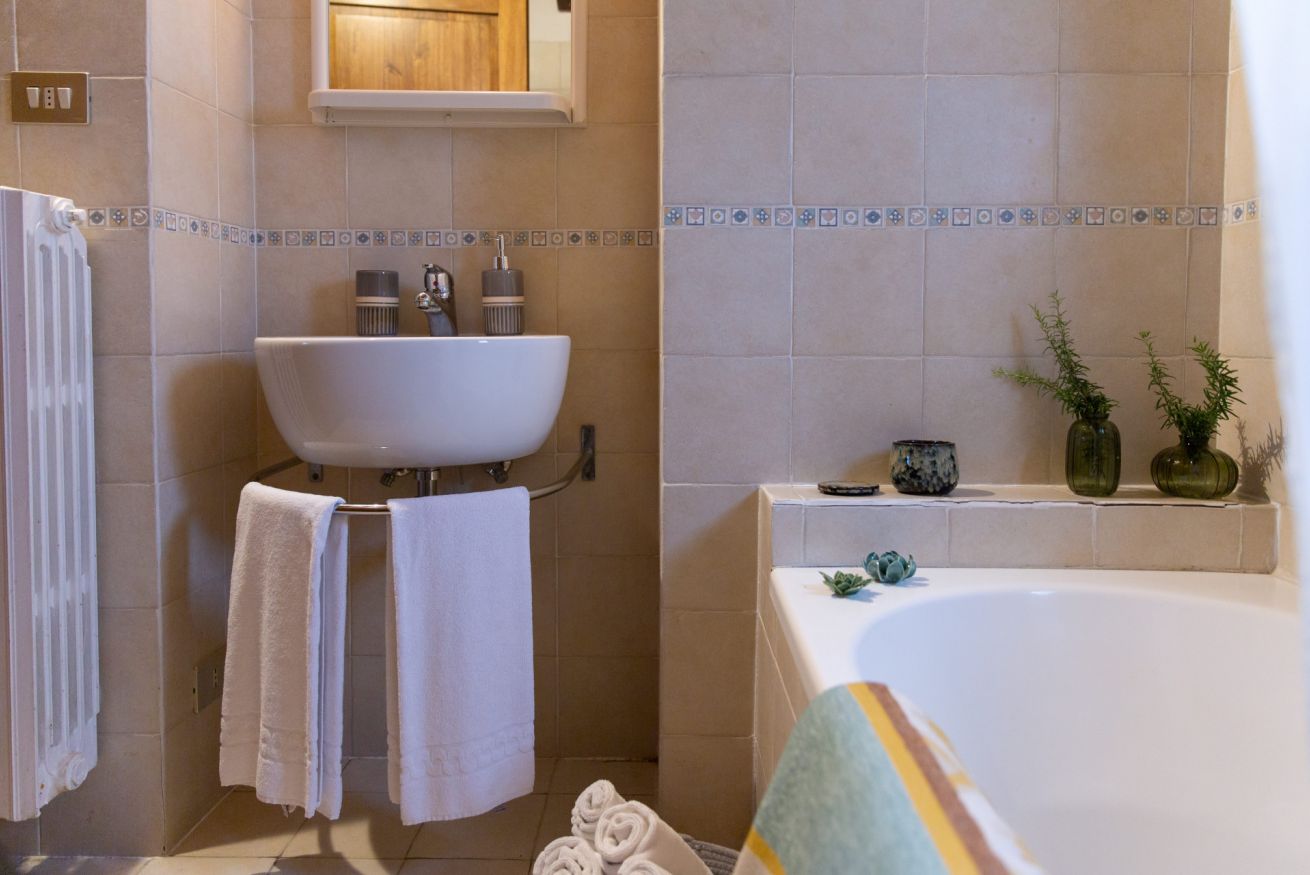 Sempre dal salotto di accede ad un disimpegno a cui si affacciano, la seconda camera con letto matrimoniale con armadio, uno studio / zona relax, perfetto per lo smart working ed il secondo bagno completo con wc con doccino e doccia (non è presente bidet classico). Una delle caratteristiche che rende unico il casale, è che ogni stanza ha un accesso verso l'esterno: Questo rende la casa molto luminosa e dona la sensazione di essere proprio immersi nella natura! Non per ultimo, a disposizione degli ospiti, un locale lavanderia con lavatrice, stendino e tutto l'occorrente.