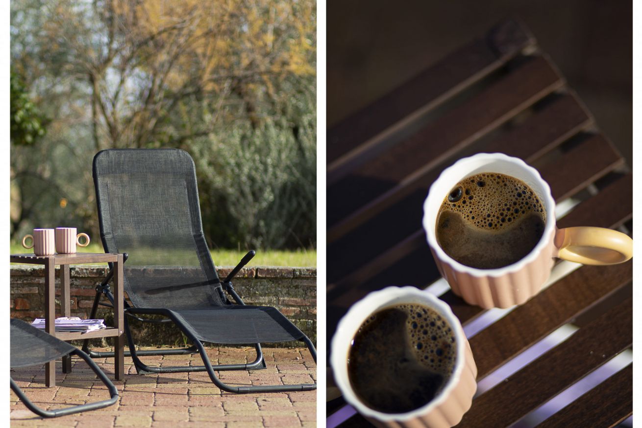 La prima stanza della casa è il soggiorno/sala da pranzo (con un caminetto che non può essere utilizzato per motivi di sicurezza). Sulla sinistra si trova la cucina, attrezzata con tutto il necessario per cucinare e una macchina da caffè a cialde Lavazza Tiny Eco. La cucina ha una portafinestra che conduce al giardino, dove troverete un barbecue per le grigliate estive.
