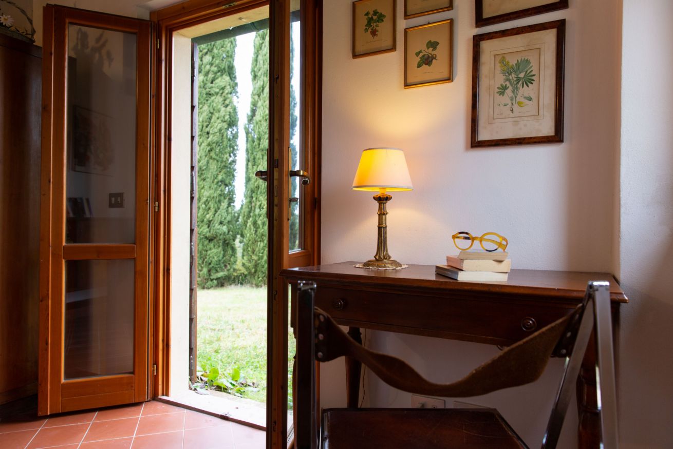 La sua posizione è privilegiata perchè gode della pace e tranquillità della campagna, la casa è infatti circondata da oliveti e vigneti (totalmente BIO), pur essendo a 5 minuti di auto dal centro. Il Casale si dispone su un unico piano, si accede dall'aia, il classico mattonato toscano, dove poter mangiare o rilassarsi al sole. Appena fuori dall'aia, una moderna piscina fuori terra, in acciaio zincato TANKKD, vi aspetta per darvi refrigerio nelle giornate più calde (misure: diametro 210 cm profondità 61 cm).