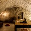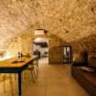 Dalla cucina si accede a un ampio salotto molto particolare, caratterizzato da soffitti in pietra a volta, in classico stile medievale. All'occorrenza, il divano può diventare un comodissimo letto matrimoniale.